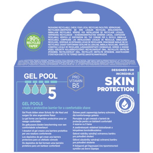 - Ostrza z systemem ochrony skóry Skin Guard: Wygładzają powierzchnię skóry, pomagając zredukować podrażnienia i zaczerwienienia.
