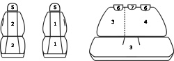 Każdy element pokrowca został oznaczony numerem. Ponumerowane części należy dopasować do elementów tapicerki według załączonego schematu.