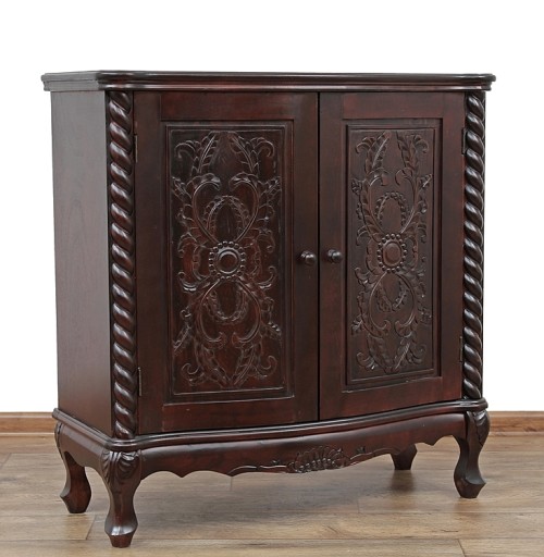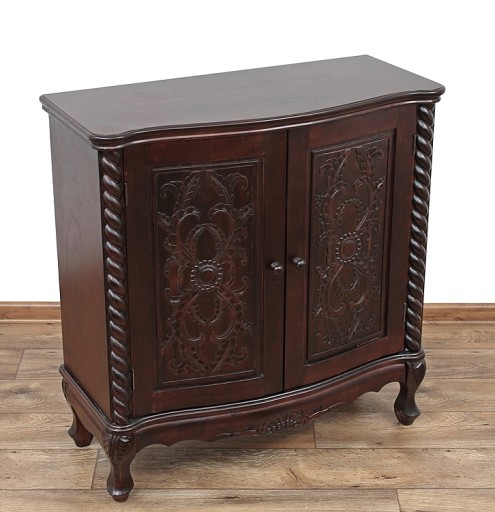 Urokliwy mebel z giętymi nogami oraz z przepięknymi rzeźbieniami.