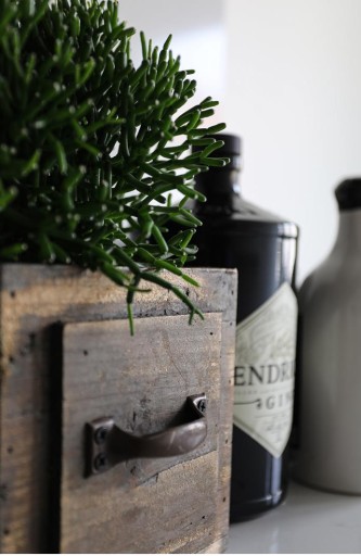 Drewniana skrzynka na kwiaty z metalową rączką. Rustykalny charakter i naturalny kolor drewna będą subtelnym dodatkiem do każdego wnętrza lub ogrodu, który jednocześni podkreśli charakter rośliny i doda odrobinę uroku dowolnej kompozycji dekoracyjnej. Nie posiada otworu do odpływu wody.