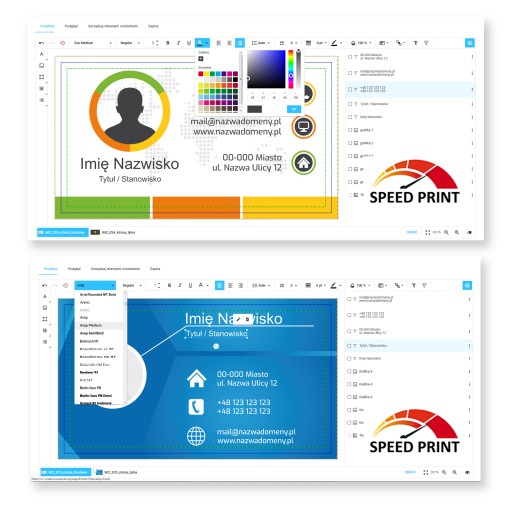 Poniżej przykłady projektów dostępnych do edycji w naszym kreatorze Speedprint_pl!