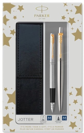 Obecnie w marce Parker trwa wymiana kolekcji zestawów prezentowych. Nowe ze złotymi gwiazdkami (na zdjęciu obok) mogą pojawić się w zależności od partii towaru. Jeśli zależy Państwu na konkretnym opakowaniu (wcześniejsze szare lub nowe z gwiazdkami) proszę o wskazanie go w zamówieniu