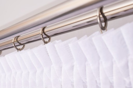 - Firana wykończona ozdobną falbanką (kryzą), która przysłania nam żabki lub agrafki.