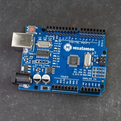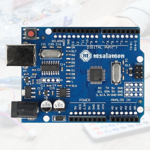 Płytka Uno R3 posiada mikrokontroler ATmega328P-AU firmy Atmel. Jest to układ kompatybilny z ATmega328P-PU znanym z oryginalnego projektu.
