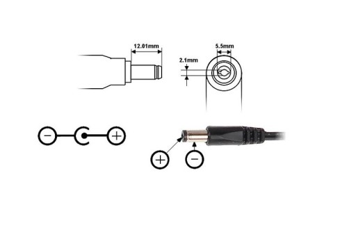 - Typ złącz zasilania: 2.1/5.5 mm Wtyk prosty