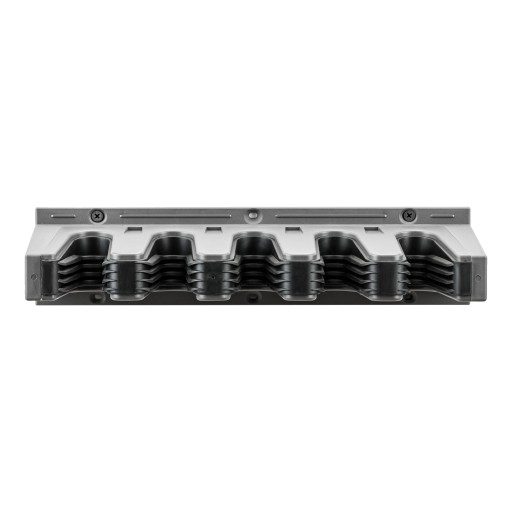 Posiada pięć przegród zabezpieczonych gumą, dzięki której akcesoria nie przemieszczają się i nie wypadają z uchwytu.