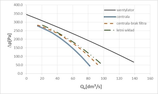 - WYDAJNOŚĆ WENTYLATORÓW 2x550m3/h