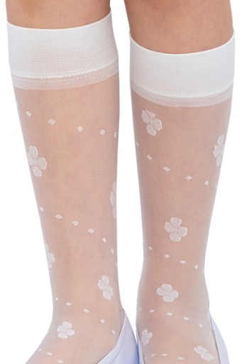 Prezentowane eleganckie, białe podkolanówki komunijne VIOLA (mot.1) z kolekcji "Little lady” cechuje: