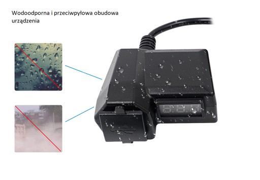 WODOODPORNA ŁADOWARKA Z WOLTOMIERZEM 2xUSB DO MOTOCYKLA/SKUTERA