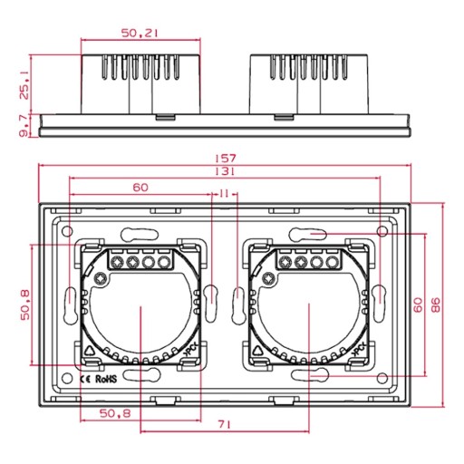 - Montaż za pomocą śrub do standardowej podwójnej puszki elektrycznej 60mm