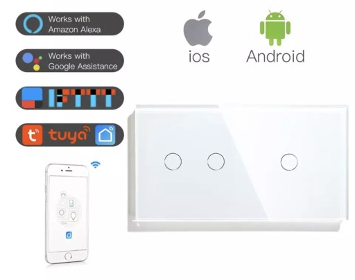 Dotykowy włącznik światła potrójny z funkcją zdalnego sterowania za pomocą sieci WiFi i aplikacji TUYA lub SMART LIFE.