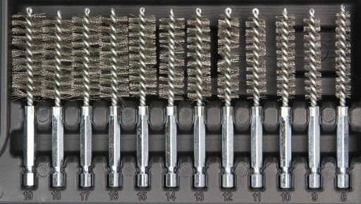 ✅Zestaw szczotek do gniazd wtryskiwaczy, gniazd świec iskrowych i żarowych.