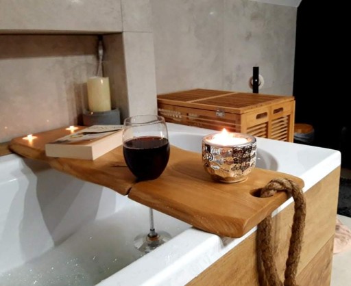 Natura to najwspanialszy artysta. Deska na wannę z miejscem na kieliszek, świeczki tealight i sznur stworzy niepowtarzalny klimat w Twojej łazience.