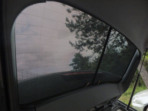 * Przy uchylonych oknach nadal spełniają swoją funkcję ochrony przed słońcem i promieniowaniem UV. Ponadto chronią wówczas przed owadami, umożliwiają wentylację niezbędną dla przebywających aucie osób bądź pozostawionych zwierząt.