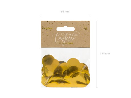 Конфетти для воздушных шаров на столе, золотые кружочки.