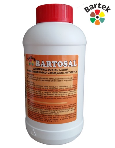 BARTOSAL to nowoczesny odrdzewiacz do powierzchni stalowych i żeliwnych, usuwa również kamień i osady z urządzeń sanitarnych (toalety, umywalki) oraz z nagrobków (poza marmurem). Doskonale odtłuszcza, poradzi sobie nawet z największą rdzą.