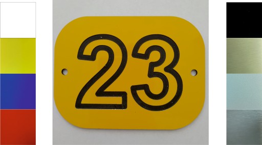 Np.: Grawerowana tabliczka numerowa: czerwona, czcionka Arial, numer 11, wersja A.