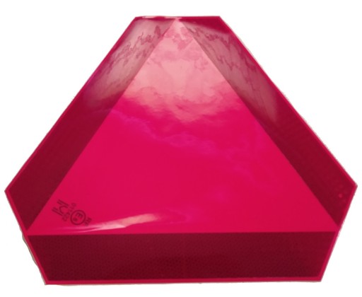 Środek trójkąta to czerwony materiał odblaskowy, zaś obrzeże to czerwony materiał fluorescencyjny.
