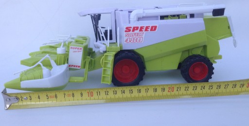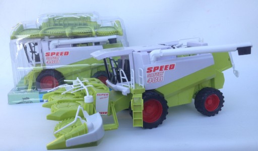 Nowy, zielony kombajn to sprzęt potrzebny w każdym małym gospodarstwie. Kombajn jest rewelacyjnie wykonany, zadbano w nim o najdrobniejsze szczegóły. Jest to pojazd potrzebny w każdej zagrodzie, spokojnie może posłużyć małemu rolnikowi do koszenia zboża na jesień. Kombajn jest napędzany poprzez popych,