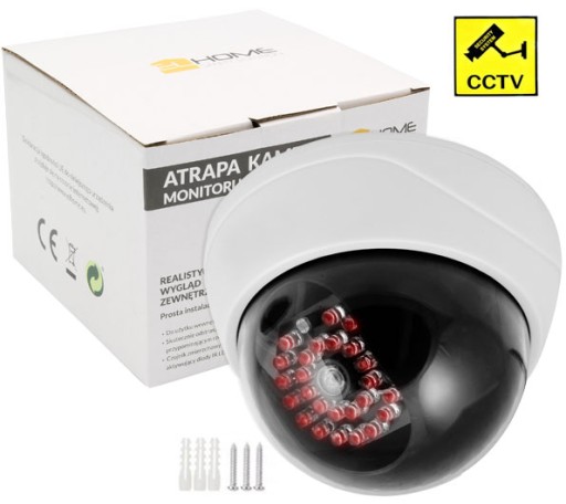 Atrapa kamery kopułkowej AK-08B3 ma za zadanie skutecznie odstraszać złodziei oraz wandali bez ponoszenia wysokich kosztów instalacji prawdziwej kamery monitorującej.