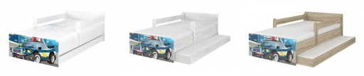 Razem w zestawie otrzymują Państwo praktyczną szufladę, wsuwaną pod łóżko na kółeczkach - co stanowi że jest ona prawo i lewo stronna. Może ona służyć do przechowywania pościeli, a także ulubionych zabawek Państwa pociech. Dołączone są również dwie barierki ochronne, zabezpieczające dziecko przed upadkiem o długości 100 cm. Są one nakładane na boki łóżka co powoduję iż państwo sami decydują w którym miejscu je nałożą.