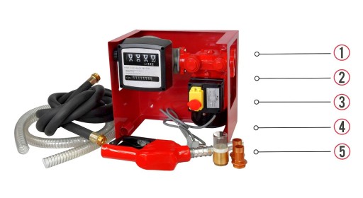 - W zestawie: pompa, licznik, dwa węże, pistolet, końcówki przyłącza