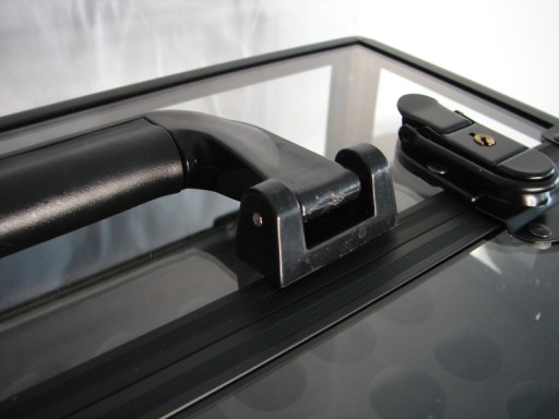 Górna część kuferka została wykonana ze specjalnej przezroczystej plexi, co daje możliwość podglądu zawartości wnętrza kuferka bez konieczności otwierania!