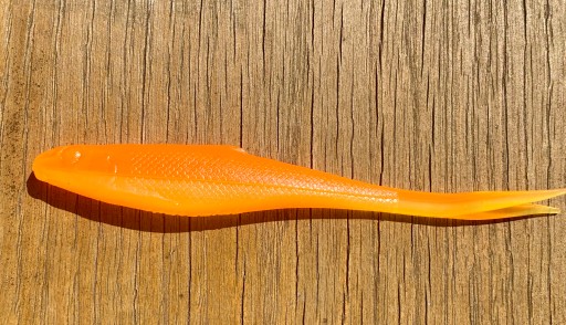 i grzbietowej oraz oko, pyszczek i łuki skrzelowe. Przynęta obecnie jest w naszej ofercie dostępna w trzech rozmiarach: 9cm, 7cm i 5 cm, a także w dwóch wersjach: klasyczne kopyto oraz „jaskółka“. Przeznaczona jest ona do łowienia metodą vertical oraz drop shot ale ostatnie sezony wędkarskie pokazały, że może być też zbrojona w klasyczną główkę jigową. Występuje w kilkudziesięciu wersjach kolorystycznych. Szeroka gama kolorów ułatwi wybór oraz dobranie przynęty do każdego rodzaju łowiska, zarówno rzeki jak jeziora, a także trafi