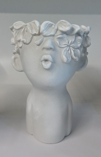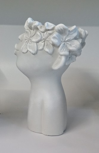 Doniczka-osłonka Dziubek.Pojemnik na bibeloty.Wysokość 26cm.Szerokość 18cm.Otwór na doniczkę 10-12cm.Materiał:konglomerat kamienno-cementowy.Kolor biało-alabastrowy.Osłonki posiadają stopki filcowe.