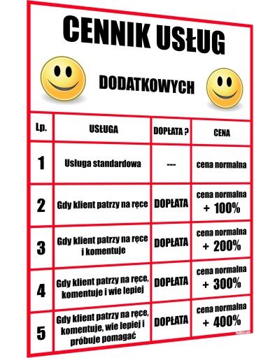 ŚMIESZNY ŻARTOBLIWY CENNIK - taki jak na zdjęciu !