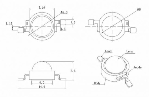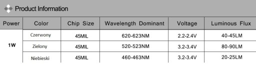 Diody świecą od 50mA do 400mA. Prąd w karcie katalogowej 350mA napięcie 2,2V - 2,4V