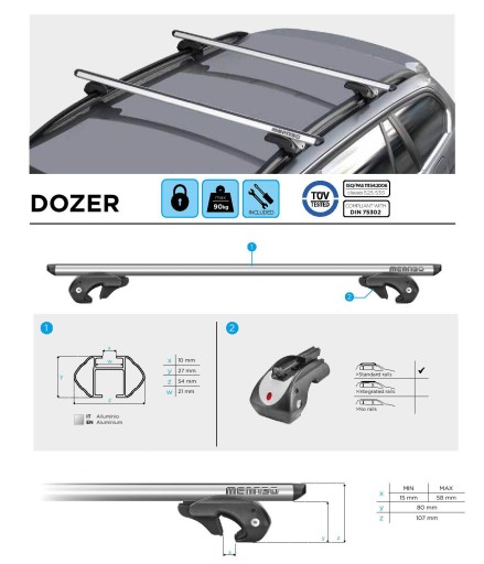 Wytrzymały bagażnik bazowy DOZER XXL włoskiej firmy Menabo, przystosowany do samochodów wyposażonych w relingi standardowe.