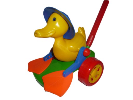 W zestawie znajduje się kijek z rączką, dzięki czemu dziecko może pchać zabawkę (KACZKA jest na kółkach)