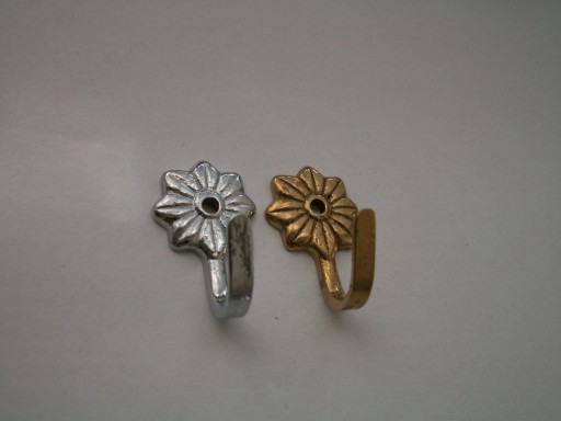 Mały haczyk motyw "Kwiatek" dowolnego zastosowania. Został tylko 1 kolor - srebrny tj. mosiądz chromowany.