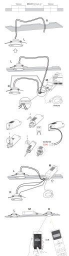 Wystarczy wywiercić w suficie dwa otwory o średnicy 150 mm dla głośników(L i R). Zamontuj jednostkę sterującą M przez otwór głośnika R. Staraj się, aby kabel antenowy został umieszczony z dala od potencjalnych źródeł zakłóceń, takich jak świetlówki, zasilacze, lampy halogenowe, wentylatory, silniki itp., które mogłyby utrudnić odbiór stacji radiowych i wpływać na jakość dźwięku. Po umiejscowieniu jednostki centralnej pozostaje podłączenie przewodów głośnika oraz zasilania. Ostatnim etapem jest umieszczenie głośników w wcześniej wywierconych otworach, Odległość pomiędzy modułem zasilającym M a urządzeniem zewnętrznym wyposażonym w bluetooth nie powinna przekraczać 10m. Zaleca się również, aby głębokość niezbędna do zabudowy modułu FM M wynosiła ok. 95mm.