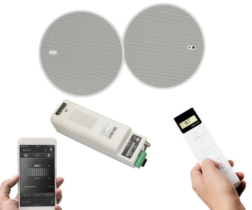 Zestaw audio z radiem FM oraz bluetooth do zabudowy sufitowej z serii Select iSTAR 5 z pilotem - nowość w ofercie hiszpańskiego producenta Eis Sound. Zestaw łączy wysoką jakość dźwięku z możliwością odtwarzania muzyki z nieograniczonej ilości urządzeń zewnętrznych takich jak: laptop, tablet czy smartphone z systemem ANDROID lub iOS.