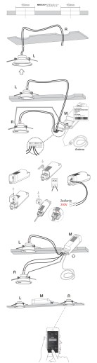Wystarczy wywiercić w suficie dwa otwory o średnicy 150 mm dla głośników(L i R). Zamontuj jednostkę sterującą M przez otwór głośnika R. Staraj się, aby kabel antenowy został umieszczony z dala od potencjalnych źródeł zakłóceń, takich jak świetlówki, zasilacze, lampy halogenowe, wentylatory, silniki itp., które mogłyby utrudnić odbiór stacji radiowych i wpływać na jakość dźwięku. Po umiejscowieniu jednostki centralnej pozostaje podłączenie przewodów głośnika oraz zasilania. Ostatnim etapem jest umieszczenie głośników w wcześniej wywierconych otworach, Odległość pomiędzy modułem zasilającym M a urządzeniem zewnętrznym wyposażonym w bluetooth nie powinna przekraczać 10m. Zaleca się również, aby głębokość niezbędna do zabudowy modułu FM M wynosiła ok. 95mm.