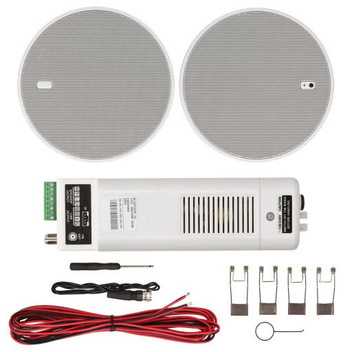 5" dwudrożne głośniki znajdujące się w zestawie zapewniają najwyższą jakość dźwięku. Dedykowane są do montażu w podwieszanym suficie, więc nie będą przeszkadzać w codziennym użytkowaniu pomieszczenia. Ważną rzeczą jest podwyższona odporność głośników na działanie pary wodnej, dzięki czemu zestawy radiowe świetnie nadają się do takich pomieszczeń jak łazienka lub kuchnia.