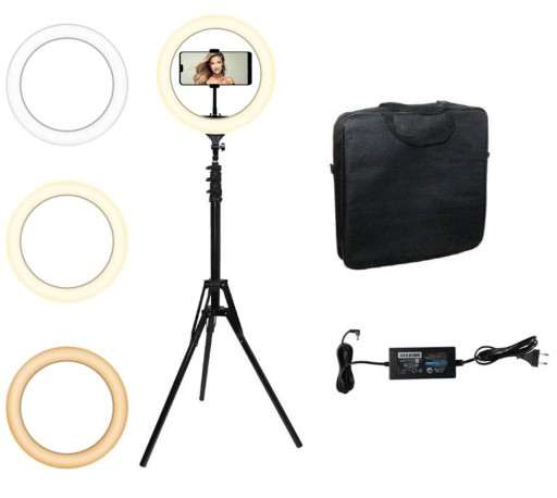 Lampa pierścieniowa 46cm statyw makijaż tatuaż gabinet 144W-240W torba etui