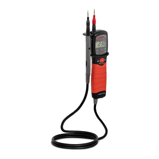 Oferowany model posiada wyraźny wyświetlacz LCD oraz diody sygnalizujące w jakim zakresie napięcia mieści się wykonany pomiar. Dodatkową zaletą miernika jest dioda LED ułatwiająca wykonanie pomiarów przy niekorzystnych warunkach oświetleniowych.