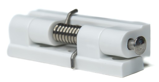 Zawias drzwiowy samozamykający wykonany z tworzywa sztucznego ze sprężyną kolor biały