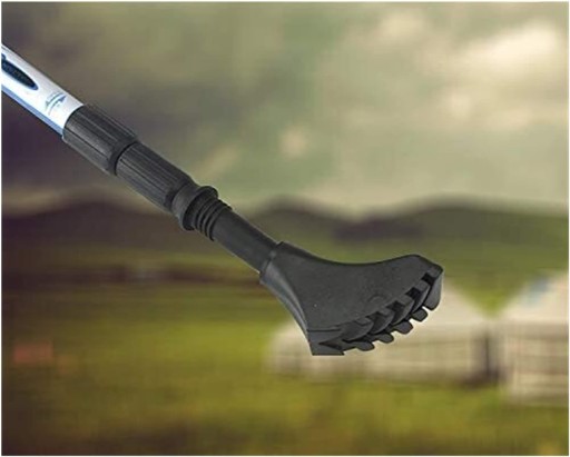 Nasadka wykonana z gumy posiada właściwości amortyzujące oraz ogranicza odgłos stukania o nawierzchnię. Końcówka posiada wyprofilowany spód, który zwiększa przyczepność i stabilność kijka na podłożu.