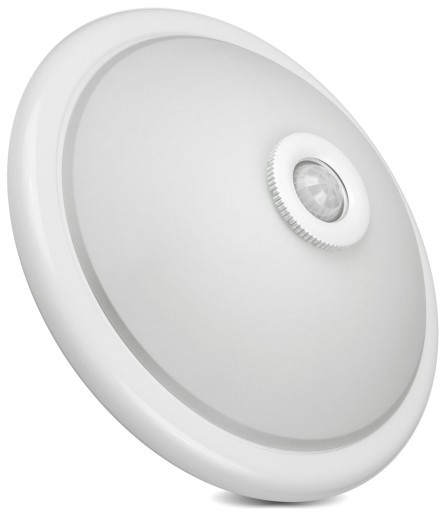 Plafon LED przeznaczony do automatycznego włączania oświetlania w pomieszczeniach takich jak: klatki schodowe, korytarze, piwnice, garaże, szatnie, toalety, itd. Dzięki czujnikowi na podczerwień produkt umożliwia automatyczne załączenie obciążenia, po wykryciu ruchu, z kolei dzięki czujnikowi światłoczułemu można ustawić poziom natężenia światła, przy jakim zaczyna wykrywać ruch.