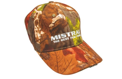 Czapka MISTRALL w kolorze jak na zdjęciu. Obowiązkowa w wyposażeniu ubioru każdego wędkarza. Dodatkowo wyposażona w latarkę diodową LED w daszku, co pozwala na swobodne oświetlenie wybranego punktu. Rozmiar uniwersalny , bardzo jasny kierunkowy strumień światła z 5 diod LED (2 baterie w zestawie).CR2032/3V. Włącznik ukryty w daszku.