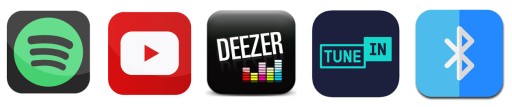 Bluetooth zumożliwia odtwarzania ulubionej muzyki z własnej biblioteki plików lub właściwie z każdej aplikacji zainstalowanej na naszym urządzeniu: Spotify, Youtube, Deezer, Tune In.