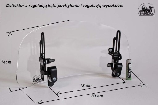 Deflektory standardowe mają tylko regulację kąta pochylenia. Zazwyczaj jest to wystarczające ale jak się okazuje często potrzeba czegoś więcej. Niejednokrotnie jak pokazuje praktyka konieczna jest po prostu zmiana jego wysokości. Przydatne jest to głównie wtedy jeśli chcemy optymalnie dobrać wysokość do swojej szyby czy też do swojego wzrostu. A dodatkowo w bardzo ciepłe dni czy też w terenie w bardzo szybki sposób możemy po prostu zniżyć deflektor do minimalnej wysokości bez jego całkowitego demontażu.
