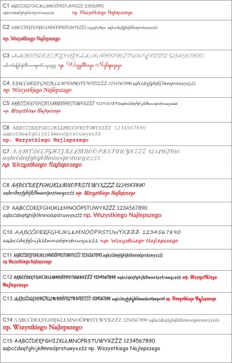 Możliwość wyboru czcionki i grafiki wykonanej przez nas (zdjęcia poniżej).