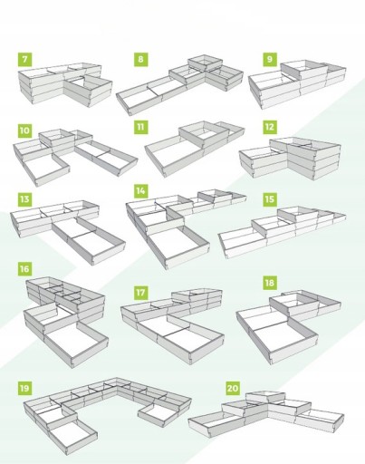 Dzięki modułowej budowie każdy warzywnik możemy w dowolne strony rozbudowywać, tworzyć własne kształty, wysokości oraz stopniowania (piętrowana rabata). Jeden moduł ma wysokość 29cm i dostępny jest w trzech szerokościach 50cm, 90cm i 128cm. Dzięki różnym szerokościom, z elementów można zbudować donice, kwietniki wokół tarasu lub wykorzystać warzywnik jako kompostownik.