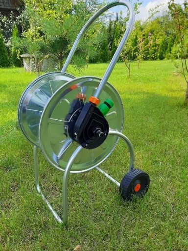 Wózek mieści do 50 metrów węża 1/2". Posiada stabilną i wytrzymałą podstawę o nowoczesnym wyglądzie.