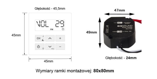 - Moduł montowany jest w puszce o głębokości i średnicy 45x45mm(1,77x1,77 cala) bądź w puszcze fi60(standardowa puszka dla łączników elektrycznych)